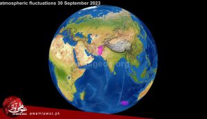 ايس ايس جي ايس موجب سمنڊ جي سطح ڀرسان فضا ۾ برقي چارج جي لاهن چاڙهن کي رڪارڊ ڪيو ويو آهي، جنهن سبب نقشي ۾ واڱڻائي رنگ وارن علائقن (پاڪستان جي بلوچستان صوبي سميت) ۾ ايندڙ ڪجهه ڏينهن ۾ طاقتور زلزلو اچي سگهي ٿو.