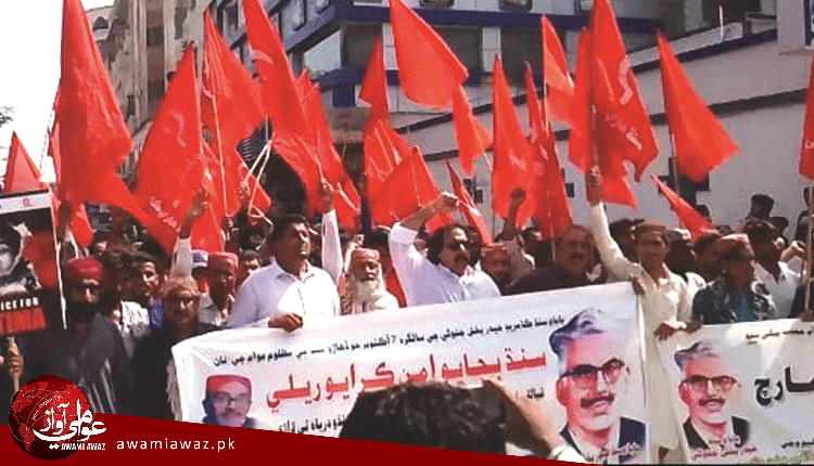 سکر (رپورٽر)سنڌ هاري ڪاميٽي باباء سڌ ڪامريڊ حيدربخش جتوئي جي جنم ڏينهن تي سنڌ بچايو ريلي سکر جي ايوب گيٽ کان پريس ڪلب تائين ريلي ڪڍي وئي، جنهن ۾ وڏي انگ ۾ سنڌ هاري ڪاميٽي ڪارڪنن، هارين، مزدورن، پورهيتن ۽ سماج جي مختلف شعبن جي ماڻهن شرڪت ڪئي. ريلي جي اڳوڻي سنڌ هاري ڪاميٽي جي مرڪزي صدر ثمر حيدر جتوئي، ولايت حسين نوناري، اعجاز شر ۽ محمد نواز جتوئي ۽ ٻين جي اڳواڻيءَ ۾ نڪتي، ريلي کي خطاب ڪندي ثمر حيدر جتوئي چيو ته حڪمرانن جي غلط پاليسين سبب اڄ عوام ڳاٽي ٽوڙ مهانگائي کي منهن ڏئي رهيو آهي. جاگيردارن سرمائيدارن ۽ ڪرپشن ڪندڙ حڪمرانن جي دولت کي ٽيڪس جي دائري ۾ آڻڻ بجاءِ حڪمران طبقو اڻ سڌو ٽيڪس لاڳو ڪري عوام تي مهانگائي جا بم ڪيترائي رهيو آهي قبائلي سرشتي جي ڪري پورهيت ۽ مڊل ڪلاس جا ماڻهو اتر سنڌ ۾ بدامني جي باهه ۾ سڙي رهيا آهن. اجمل ساوند کان جان محمد مهر ، اصغر کنڊ، فاطمه ڦرڙو، افضل لنڊ ۽ پريا ڪماري ان ظلم جو شڪار ٿيندا رهيا آهن، هن چيو ته سرمائيدارن، جاگيردارن، ڪرپٽ حڪمرانن جي ملڪيت کي ٽيڪس لاڳو ڪري عوام کي رليف ڏنو وڃي،کير ٿر ۽ ڪارونجهر جو مڪمل تحفظ ڪيو وڃي.