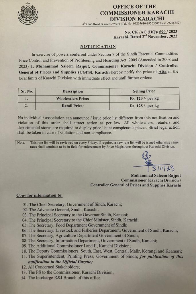 ڪراچي جي ڪمشنر طرفان اٽي جو في ڪلو اگهه 128 رپيا مقرر ڪرڻ باوجود 135 رپيا في ڪلو وڪرو ٿي رهيو آهي، ڪڪڙ جو گوشت 502 رپين بدران 560، في درجن بيضا 290 بدران 340 رپين ۾ وڪرو ٿي رهيا آهن.
