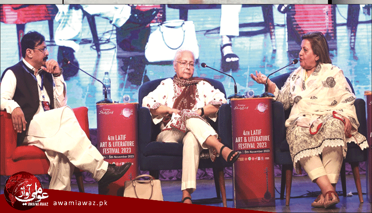 ڪراچي: شاهه عبداللطيف ڀٽائي نوجوانن کي گهڻو اتساهيو آهي، هو سنڌين کي پيري مريدي وارو درس ڏيڻ وارو نه هو، اهڙو اظهار شاهه عبدالطيف جي پيغام بابت سيشن ۾ ڪيو ويو، اديب ۽ ليکڪ نورالهديٰ شاهه چيو ته شاهه لطيف وٽ پيري مريدي وارو ڪو به تصور نه هو، هو مرشد نه پيو ٿيڻ چاهي، نه وري هن کي مريدن جي ضرورت هئي، هن چيو ته شاهه لطيف اسان جو روحاني پير آهي، جيڪو پيري مريدي کان پري سڌريل سماج ڏسڻ چاهي ٿو. تعليمدان فهميده حسين چيو ته شاهه سائين نوجوانن کي پيغام ڏنو ته محرومين مان نڪري ماهر ٿيو ۽ اڳتي وڌو، هن چيو ته ڀٽائي جي شاعري ۾ جدوجهد ڪرڻ جو پيغام آهي.
