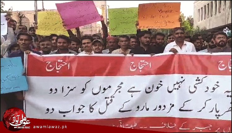 ڪراچي (رپورٽ : مهدي بلوچ) ڪراچي جي ڪلفٽن واري علائقي ۾ سيٺ جي فليٽ تي ڇاڇري واسي پورهيت مارو ميگهواڙ جو ڦاهو لڳل لاش هٿ اچڻ وارو معاملو، ميگهواڙ برادري طرفان واقعي کي قتل قرار ڏيندي ڪراچي پريس ڪلب آڏو احتجاج ڪيو ويو، ڪلفٽن واري علائقي مان مبينا ڦاهو کاڌل لاش هٿ اچڻ واري معاملي تي پورهيت مارو ميگهواڙ جي وارثن ۽ ميگهواڙ برادري پورهيت جي موت کي قتل قرار ڏيندي ڪراچي پريس ڪلب آڏو احتجاجي مظاهرو ڪيو، مارو جي وارثن ۽ ميگهواڙ برادري جي اڳواڻن ميڊيا سان ڳالهائيندي چيو ته 31 آڪٽوبر تي مارو جو ڦاهو لڳل لاش ٽرينڊن بلڊنگ جي سرونٽ ڪوارٽر مان مليو، مارو سيٺ سنيل وٽ بورچي هو سيٺ سنيل مارو کي قتل ڪري واقعي کي خودڪشي جو رنگ ڏيڻ جي ڪوشش ڪري رهيو آهي، هنن چيو ته پوليس شفاف جاچ ڪرڻ بدران چئي ٿي ته مارو خودڪشي ڪئي آهي، هنن الزام لڳائيندي چيو ته سيٺ سنيل موڪل گهرڻ تي مارو تي تشدد ڪندو هو، مارو کي ڏياري جون موڪلون به نه ڏنيون، موڪلون نه ملڻ ۽ تشدد سبب مارو نوڪري ڇڏڻ چاهي پيو هن اهڙو اطلاع گهر وارن کي به ڏنو، 31 آڪٽوبر تي سيٺ سنيل ڪال ڪري اطلاع ڏنو ته مارو خودڪشي ڪئي آهي، مارو خودڪشي نه ٿو ڪري سگهي، پورهيت مارو کي قتل ڪيو ويو آهي. هنن وڏو وزير ۽ آءِ جي سنڌ کان مطالبو ڪيو ته واقعي جو نوٽيس وٺي سيٺ سنيل کي گرفتار ڪري سندس خلاف ڪيس داخل ڪيو وڃي.