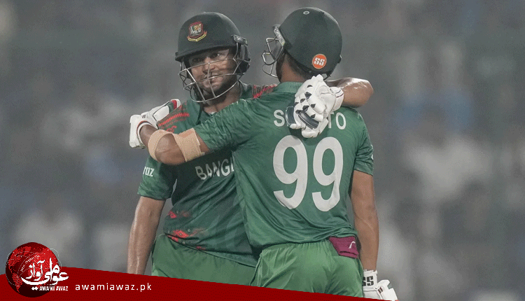نئي دهلي ( م ڊ ) آءِ سي سي ورلڊ ڪپ جي 38هين ميچ ۾ بنگلاديش سريلنڪا کي 3 وڪيٽن تان شڪست ڏئي ڇڏي.نئين دهلي جي ارون جيٽلي ڪرڪيٽ اسٽيڊيم ۾ کيڏيل ميچ ۾ سريلنڪا بنگلاديش کي کٽڻ لاءِ 280 رنسن جو ٽارگيٽ ڏنو، جيڪو هن 42 هين اوور ۾ حاصل ڪري ورتو. بنگلاديش ٽاس کٽي پهريان فيلڊنگ جو فيصلو ڪيو ۽ سريلنڪن جي پوري ٽيم 49.3 اوورن ۾ ڍير ٿي وئي. بنگلاديش طرفان تنظيم حسن 3 وڪيٽون ورتيون، جڏهن ته شريف الاسلام2 ۽ شڪيب الحسن 2 وڪيٽون ورتيون. پوائنٽس ٽيبل تي هن وقت سريلنڪا ستين ۽ بنگلاديش نائين نمبر تي آهي، ٻئي ٽيمون سيمي فائنل کان ٻاهر آهن. بنگلاديش خلاف سريلنڪا جي چوٿين ۽ پنجين وڪيٽ 135 رنسن تي ڪري پئي، اينجلو ميٿيوز کي امپائر طرفان بنا ڪنهن بال کيڏڻ جي ٽائم آئوٽ ڪيو ويو. قانون موجب نئين بيٽسمين کي 2 منٽن اندر بال کي منهن ڏيڻو پوندو آهي، اينجلو ميٿيوز جي هيلمٽ جي پٽي ڦاٽل هئي، ٻارهين رانديگر نئون هيلمٽ آڻڻ ۾ دير ڪئي، جنهن سبب امپائر کيس آئوٽ قرار ڏنو.