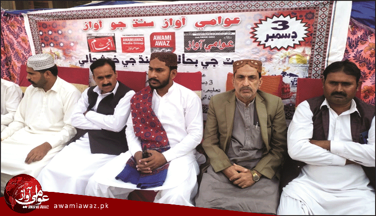لاڙڪاڻو(رپورٽ:عبدالوحيد ابڙو) لاڙڪاڻي۾ عوامي آواز ميڊيا گروپ طرفان ڏنل 3 ڊسمبر تي ثقافتي سڏ ميرٽ جي بحالي سنڌ جي خوشحالي سري ھيٺ وڏي شاندار نموني سان ملھايو ويو پورو شھر اجرڪ ۽ ٽوپي ثقافتي ويسن سان رنڱجي ويو مک تقريب ۾ سياسي سماجي مذھبي ڌرين جي اڳواڻن اڳوڻي صوبائي وزير سھيل انور سيال جي ڀاءُ ۽ پ پ اڳواڻ ٽائون چيئرمين سردار شاھ رخ انور سيال جيئي سنڌ ليڊيز ونگ اڳواڻ ناياب سرڪش سنڌي ايس ٽي پي ضلعي اڳواڻ نصير احمد ڪلھوڙو ڪامريڊ طارق جتوئي مستوئي اتحاد اڳواڻ محمد موسي مستوئي ڪرم سيٺار محمد نواز عمراڻي سميت شاگردن ۽ شھرين ڀرپور نموني شرڪت ڪئي ثقافتي تقريب دوران نوجوانن قومي گيتن تي رقص ڪيو قومي راڳي ماسٽر حبدار ميراڻي سنڌڙي تي سر ڪير نه ڏيندو سھندو ڪير ميار ۽ جنت الفردوس آھن ٻئي ڪنڌيون مھراڻ جھڙا ڪلام ڳائي ماحول مھڪائي ڇڏيو اڳواڻن چيو ته اسان عوامي آواز ميڊيا گروپ جا شڪرگذار آھيون جنھن سنڌ ڌرتي جي ثقافت جي بحالي ۽ ميرٽ جي بنياد تي ايڪتا سڏ ڏئي ڪروڙين سنڌين کي ھڪ لڙي ۾ پوئي ڇڏيو آھي اسان سنڌ واسي فخر ٿا ڪيون ته ڌرتي ننڌڻڪي ناھي جو ڪو قبضاگير اچي ٽڪرا ڪري سگھي آخر ۾ آيل مھمانن عوامي آواز ميڊيا گروپ لاڙڪاڻي جي اڳواڻن عبدالوحيد ابڙو ۽ حسين بخش ابڙو کي ڪامياب ثقافتي پروگرام ڪرائڻ تي مبارڪون ڏنيون ۽ گلن جا ھار پھرايا . هوڏانهن ٻي تقريب ۾ ناليواري راڳي سڄڻ مائري، راجا سمون، شيراز عباسي، نادر لاشاري، عاشق مگسي، لياقت سمون، ظهور شيخ، منظور سمون ۽ ٻين فنڪارن هن جن هن جنم لاءِ وچن ٿو ڪريان مان جتي به هجان سنڌ تنهنجو هجان“، ”سنڌ جيئي سنڌ وارا جيئن ٽوپي اجرڪ وارا جيئن“، سميت گيت پيش ڪري ماڻهن کي جهومائي ڇڏيو،
