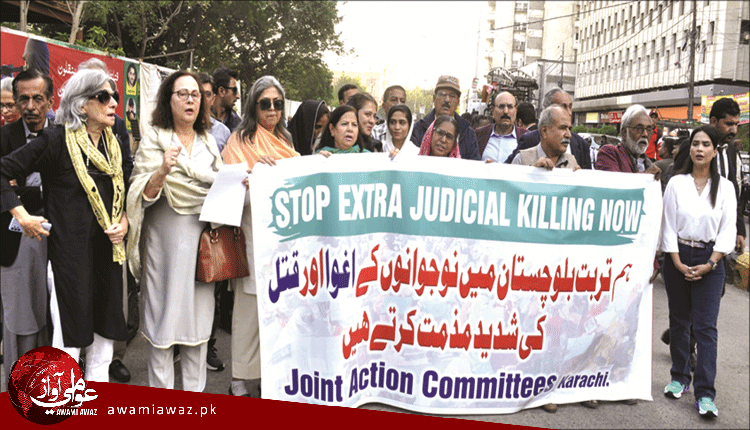 ڪراچي/تربت (رپورٽر ) تربت ۾ نوجوان جي قتل خلاف احتجاج ڪندڙن ڪوئيٽا طرف مارچ شروع ڪري ڇڏيو آهي جڏهن ته ڪراچي ۾ جوائنٽ ايڪشن ڪميٽي طرفان بلوچستان جي علائقي تربت ۾ گرفتار ڪيل بلوچ نوجوانن جي م قتل خلاف ڪراچي پريس ڪلب ٻاهران احتجاجي مظاهرو ڪيو ويو. جنهن ۾ انساني حقن جي تنظيمن، سول سوسائٽي، سياسي ۽ سماجي پارٽين جي اڳواڻن ۽ ڪارڪنن شرڪت ڪئي. سي ٽي ڊي بلوچستان خلاف سخت نعريبازي ڪئي وئي. ان موقعي تي هيومن رائيٽس ڪميشن جي چيئرمين اسد بٽ، قاضي خضر، سعيد، وومين ايڪشن فورم جي عظميٰ نوراني، مهناز رحمان ٽريڊ يونين اڳواڻ ناصر منصور، زهرا خان، لياري عوامي محاذ جي خليق زدران، ڪامريڊ وحيد بلوچ ۽ ٻين پڻ خطاب ڪندي چيو ته 23 نومبر 2023 تي بلوچستان جي ڪيچ ضلعي جي اهم شهر تربت ۾ ڪائونٽر ٽيررازم ڊپارٽمينٽ (سي ٽي ڊي) بالاچ، مولابخش ۽ ٽن ڄڻن کي جعلي مقابلي جي نالي تي قتل ڪيو. هنن مطالبو ڪيو ته بالاچ جي قتل ۾ ملوث سرڪاري اهلڪارن کي گرفتار ڪيو وڃي. هنن چيو ته ڪوڙي مقابلي کان 2 ڏينهن اڳ بالاچ کي سي ٽي ڊي تربت جي مقامي عدالت ۾ پيش ڪري 10 ڏينهن جي جسماني رمانڊ تي ورتو هو. بعد ۾ بالاچ کي عدالت ۾ پيش ڪرڻ بدران تربت ۾ 4 ڄڻن کي ڪوڙي مقابلي ۾ قتل ڪيو ويو. هيومن رائٽس ڪميشن جي چيئرمين اسد بٽ چيو آهي ته بلوچستان ۾ جبري گمشدگين جي واقعن ۾ ڪا به گهٽتائي ناهي آئي، ان کان وڌيڪ پريشاني جي ڳالهه اها آهي ته بلوچ شاگردن جي جبري گمشدگين جا واقعا وڌي ويا آهن. اسد بٽ جبري گمشدگي کي ڏوهه قرار ڏيندي چيو ته ذميوار آفيسرن ۽ اهلڪارن کي گرفتار ڪيو وڃي.