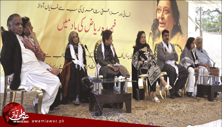 ڪراچي (رپورٽ : ذوالفقار راڄپر ) اردو ٻولي جي عورتن جي آواز اٿارڻ واري مزاحمتي ترقي پسند شاعره فهميده رياض جي ياد ۾ ڪراچي پريس ڪلب جي ادبي ڪميٽي پاران هڪ تقريب منعقد ڪئي وئي. ان موقعي تي خطاب ڪندي سنڌ اسيمبليءَ جي اڳوڻي ميمبر مھتاب اڪبر راشدي چيو ته فهميده رياض اردو شاعري جي بلندين تي پهتل عورتن جي دٻيل آواز خلاف عورت زاد مزاحمتي شاعره آهي، هن پنهنجي شاعريءَ وسيلي ڪمزور عورتن کي همت ۽ مزاحمت ڪرڻ جو رستو ڏنو. صحافي ۽ ليکڪ مجاهد بريلوي چيو ته فهميده رياض جن عورتن جي مسئلي تي شاعري ڪئي، اڄ به عورتن جي ترقي ۽ آزادي آڏو اهي رڪاوٽون موجود آهن، هو سوچيندي، لکندي ۽ پريشان به رهندي هئي، ڪراچي پريس ڪلب جي صدر سعيد سربازي چيو ته فهميده رياض عورتن جي حقن جو اردو ادب ۾ وڏو مزاحمتي ڪردار رهيو آهي. ليکڪا عطيه دائود چيو ته فهميده رياض جي ايندڙ نسل سڃاڻپ سندس تحريرن وسيلي ڪندو، هن عورتن خلاف چپ سبيل معاشري جي سمورن اصولن ۽ چالو ڳالهين کي ٽوڙي عورت جي ڪمتري وارين ڳالهين کي رد ڪندي ان کي برتر ڪري پيش ڪيو. پروگرام ۾ سجاڳ ٻار تحريڪ جي اڳواڻ عائشه لاڙڪ فهميده رياض جي شاعري ٻڌائي، جڏهن ته شيما ڪرناڻي ۽ ماهين بلوچ گروپ جي ڇوڪرين فهميده رياض جي انقلابي شاعري تي ٽيبلوز پيش ڪيا. پروگرام ۾ مشهور ماهر نفسيات ڊاڪٽر هارون احمد، قومي عوامي تحريڪ جي اڳواڻ مظهر راهوجو، سنڌياڻي تحريڪ جي شهناز راهوجو، مهناز رحمان، انور سن راءِ ۽ ٻين اديبن ۽ شاعرن شرڪت ڪئي.