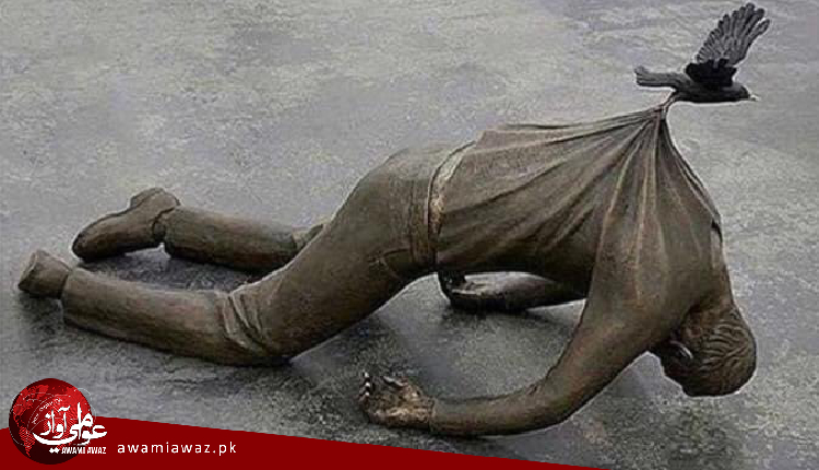 تصوير ۾ مرد انسان جو هجڻ طاقت جي علامت کي سمجهي سگهجي ٿو، جڏهن ته ان جو زمين تي منهن ڀر پوڻ جا به دنيا کان منهن ڦيرڻ، لاعلمي، اڻڄاڻائي، اکيون ٻوٽڻ يا پٺي ڏيڻ سميت مختلف سبب ڪڍي سگهجن ٿا.