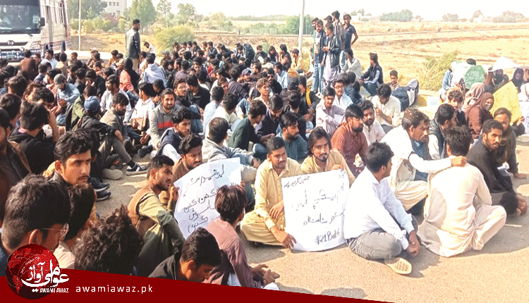 ڄامشوري ۾ مهراڻ ورسٽي جي نئين ٽرم بيڪ پاليسي خلاف شاگردن جو مارچ، ڌرڻو