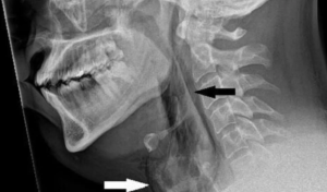 جنهن فوري بعد مريض جو ايڪسري ڪيو ويو جنهن سان انڪشاف ٿيو ته ساهه جي ناليءَ ۾ سوراخ ٿي ويو آهي.
