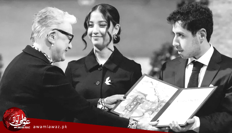 ايران جي جيل ۾ قيد نرگس محمدي جي لاءِ نوبيل جي امن انعام جو اعلان ٿيو ھو.جيڪو ھن جي جاڙن ٻارن نياڻي ۽ پٽ، ناروي جي راڄڌاني اوسلو ۾ هڪ تقريب دوران وصول ڪيو.