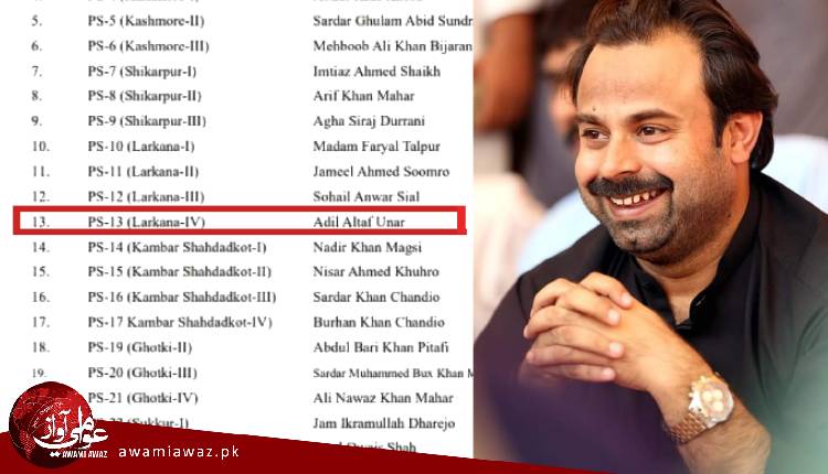پيپلزپارٽي صوبائي اسيمبلي لاءِ هڪ سئو ٽي اميدوارن جا نالا فائنل ڪيا آهن جن مان لاڙڪاڻي جي عوام لاءِ انتظار جو سبب بڻيل پي ايس تيرهن تي پيپلزپارٽي ۾ تازو شموليت ڪندڙ عادل الطاف انڙ کي ٽڪيٽ جاري ڪئي وئي آهي.