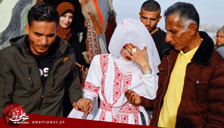 پرڏيهي خابرو اداري موجب رفح جي پناهگير ڪيمپ ۾ فلسطيني خاندان پنهنجي ٻچي جي شادي ڪرائي ڇڏي جن جي شادي اسرائيل جي حملي کان اڳ طئي ٿيل هئي پر بمباري ۾ سندن گھر تباهه ٿيڻ کان پوءِ اهو خاندان پناهگير ڪيمپن ۾ رهي رهيو آهي.