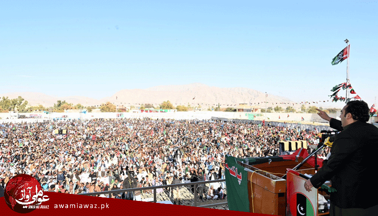 بلاول ڀٽو زرداري چيو ته 8 فيبروري تي بلوچستان ۾ تيرن جي برسات ٿيندي، جيڪڏهن مان پارليامينٽ ۾ پهچي ويس ته عوام کي خبر آهي انهن جو آواز اٿاريندس، جيئن مان سنڌ ۾ 30 لک گهر ٺاهي حقدارن کي ڏئي رهيو آهيان، ائين ئي بلوچستان ۾ به گهر ٺاهي ماڻهن کي مالڪاڻا حق ڏيندس.