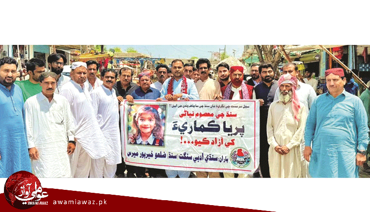ڪراچي/حيدرآباد/سکر (نمائندن وٽان) سنگرار مان اغوا ٿيل پريا ڪماري جي آزادي لاءِ ميرپورماٿيلو، دادو ۽ شهدادپور ۾ احتجاجي مظاهرا  رڪارڊ ڪرايا ويا آهن، ان ڏس ۾ گڏ ڪيل رپورٽن موجب، ميرپورماٿيلي ۾ جي ڊبليو سي اڳواڻ سيد اشرف شاهه، فقير رمضان ڪلوڙ، مير حسن لاشاري، علي نواز جلباڻي، ايازکهاوڙ، ۽ ٻين مظاهرو ڪيو. ٻئي طرف دادو ۾ سيتا سرجڻهار فورم جي مشهور ميمڻ، شهزاد علي ميمڻ، شبير احمد بالادي، علي اڪبر خانزادو، آصف خانزادو، عبدالرزاق سيال، آذان ميمڻ، محبوب علي بالادي ۽ ٻين احتجاج ڪيو، هوڏانهن شهدادپور ۾ سنڌي ادبي سنگت پاران عبدالحئي سومرو، منير حيدر لغاري، عبد الله چانڊيو، سپاهي محمد اسماعيل خاصخيلي، علي نواز سريوال، سليم سولنگي ۽ ٻين احتجاج ڪيو. صوڀي ديري ۾ به احتجاجي مظاهرو رڪارڊ ڪرايو ويو. احتجاج ڪندڙن جو چوڻ آهي ته معصوم پريا ڪماري کي اغوا ٿئي 25 مهينا گذري چڪا آهن، پر افسوس سان اهو چوڻو ٿو پوي ته پوليس سندس معصوم نياڻي کي بازياب ناهي ڪرائي سگهي جيڪا پوليس جي نااھلي آهي، هنن موجوده حڪومت کان مطالبو ڪيو ته معصوم پريا ڪماري کي جلد بازياب ڪرايو وڃي.