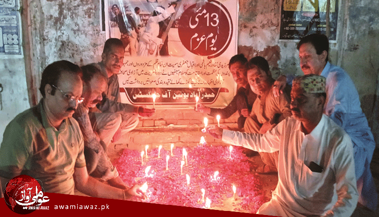 حيدرآباد(رپورٽر) پي ايف يو جي، جي سڏ تي حيدرآباد يونين آف جرنلسٽس پاران ضياء جي آمريت ۾ 13 مئي تي ڪوڙا کائيندڙ صحافين کي خراج تحسين پيش ڪرڻ لاءِ ڪالھ رات جو حيدرآباد پريس ڪلب آڏو تقريب منعقد ڪئي وئي. جتي صحافين ضياء جي مارشل لا ۾ ڪوڙا کائيندڙ ھيروز سينيئر صحافين ناصر زيدي، خاور نعيم ھاشمي، اقبال جعفري سميت سمورن صحافت جي آزادي ۽ جمھوريت پسندن جي تصويرن آڏو گلن جي ورکا ڪري ميڻ بتيون روشن ڪري خراج عقيدت پيش ڪئي. قلم ڌڻين اظھار راءِ جي آزادي لاءِ ۽ ھر قسم جي آمريت خلاف سخت نعريبازي ڪئي. ان موقعي تي حيدرآباد يونين آف جرنلسٽس جي صدر اقبال ملاح، جنرل سيڪريٽري جئي پرڪاش موراڻي، خزانچي جاني خاصخيلي، ڄام فريد لاکو، تنوير آرائين، ۽ ٻين چيو ته اظھار راءِ جي آزادي ۽ بنيادي انساني حقن توڙي جمھوري قدرن تي ڪابه سوديبازي نه ڪئي ويندي.