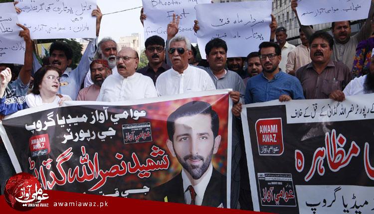 ڪراچي (ذوالفقار راڄپر+شفقت نوناري ) صحافين، سول سوسائٽي جي نمائندن، سياسي ۽ مزدور اڳواڻن روزاني عوامي آواز ميرپور ماٿيلو جي رپورٽر شهيد نصرالله گڏاڻي جي قاتلن لاءِ جوڙيل ”جي آءِ ٽي “ ۽ گهوٽڪي جي ايس ايس پي مٿان بي اعتمادي جو اظهار ڪندي مطالبو ڪيو ته روزاني عوامي آواز ميرپور ماٿيلو جي رپورٽر شهيد نصرالله گڏاڻي جي قتل جي تحقيقات ۽ قاتلن جي گرفتاري لاءِ جوڙيل جي آءِ ٽي ختم ڪري سکر، گهوٽڪي ضلعي جي پوليس آفيسرن بدران ٻين ضلعن جي پوليس آفيسرن تي مشتمل هڪ نئين جي آئي ٽي جوڙي ان ۾ گهوٽڪي جي ايس ايس پي کي جوابدار جي حيثيت ۾ شهيد صحافي جو خون لوڙهڻ تي هن کان پڇا ڳاڇا ڪئي وڃي، شهيد صحافي جي قتل جي ايف آئي آر ان جي ماءُ جي منشا مطابق ڪٽي قاتلن جي گرفتاري ۾ سستي ختم ڪئي وڃي، شهيد صحافي جي قتل ۽ قاتلن جي گرفتاري نه ٿيڻ ۽ گهوٽڪي پوليس طرفان ڪيس لوڙهڻ جو سنڌ هاءِ ڪورٽ جو چيف جسٽس پاڻمرادو نوٽيس وٺي ڪنهن جج جي سربراهي ۾ هڪ تحقيقي ڪميٽي جوڙي وڃي، سنڌ حڪومت شهيد نصرالله گڏاڻي جي خاندان جي ڪفالت ۽ ٻارن جي پڙهائي لاءِ فوري طور هنگامي فنڊ جو اعلان ڪري. اهڙا مطالبا ڪالهه سومر ڏهاڙي نصر الله گڏاڻي جي شهات ۽ قاتلن جي گرفتاري لاءِ روزاني عوامي ميڊيا گروپ پاران ڪراچي پريس ڪلب ٻاهران احتجاجي مظاهري ۾ ڪيا ويا، روزاني عوامي آواز جي چيف ايڊيٽر ڊاڪٽر جبار خٽڪ، روزاني هلچل جي چيف ايڊيٽر يونس مهر، جيئي سنڌ محاذ جي رياض چانڊيو، جيئي سنڌ محاذ جي عبدالخالق جوڻيجو، پاڪستان تحريڪ انصاف ( پي ٽي آئي ) جي اڳواڻ حليم عادل شيخ، سنڌياڻي تحريڪ جي اڳواڻ پرهه سومرو، جيئي سنڌ قومي محاذ جي الاهي بخش بڪڪ، عوامي تحريڪ جي ڪاشف ميربحر، نيشنل مزدور فيڊريشن جي ناصر منصور، عبدالخالق زردان، سنڌ عوامي سٿ جي رياض کيمٽيو، سنڌ ترقي پسند پارٽي جي خير محمد مگسي،اين ڊي پي چيئرمين ممتاز بروهي،ڪراچي سوشل فورم جي چيئرمين محبوب عباسي،اڳوڻي ايم اين اي ۽ ايم ڪيو ايم اڳواڻ نثار پنهور،جماعت اسلامي اڳواڻ مجاهد چنا،وڪيل امداد چاچڙ،سنڌي شاگرد تحريڪ جي نويد عباس ڪلهوڙو،ايوب مهر،ايس ايس او جي مرڪزي صدر گلاب راءِ،صحافي ظهير خان پٺاڻ،جميل چانڊيو،اصغر بروهي،هدايت الله لاکو،عنايت قمبراڻي،محمد علي نقرچ،عوامي آواز جي ايگزيڪيوٽو ايڊيٽر حميده گهانگهرو، عوامي آواز جي نيوز ايڊيٽر مدثر سنگراسي، سارنگ زين چانڊيو،ولي ناريجو، عامر خٽڪ، وليد، ثاقب، گلبهار گاڏهي،علي گل سومرو، ثاقب سنديلو،وقاص سنديلو،سرمد ادل،فرقان،حفيظ ڦلپوٽو سميت سول سوسائٽي جي ماڻهن وڏي انگ ۾ شرڪت ڪئي،ان موقعي تي روزاني عوامي آواز جي چيف ايڊيٽر ڊاڪٽر جبار خٽڪ ڳالهائيندي چيو ته اسان کي روزاني عوامي آواز جي دلير ۽ بي باڪ صحافي نصر الله گڏاڻي جي قتل جي تحقيقات ۽ قاتلن جي گرفتاري لاءِ جوڙيل ڪميٽي تي اعتماد نه آهي ۽ ايس ايس پي سمير نور چنا قاتلن سان ملي شهيد ٿيل صحافي جو قتل لوڙهي رهيو آهي، ان لاءِ سکر ۽ گهوٽڪي ضلعي کان ٻاهر جي پوليس آفيسرن ۽ ٻين تي مشتمل هڪ نئين جي آئي ٽي جوڙي وڃي ۽ نصرالله جي ماءُ جي مرضي موجب قاتلن خلاف ايف آئي آر داخل ڪري فوري طور قاتل گرفتار ڪيا وڃن، نصرالله جي قتل کي لوڙهڻ لاءِ ڪوڙي پروپيگنڊا به ڪئي پئي وڃي جڏهن شهيد صحافي جي والده ٿاڻي تي ايف آئي آر داخل ڪرائڻ لاءِ وئي ته ايس ايڇ او مٿان کان آيل هدايت مطابق ٿاڻو ڇڏي ڀڄي ويو،مقامي پوليس قاتلن سان ملي شهيد جي قتل جو ڪيس خراب ڪرڻ جي سازش تي ڪم ڪري رهي آهي، پي ٽي آئي جي اڳواڻ حليم عادل شيخ چيو ته سنڌ ۾ سول حڪومت جو وجود نه آهي، سنڌ جو وڏو وزير سيد مراد علي شاهه چيف مارشلا بڻجي ڪرسي تي ويٺل آهي، سنڌ اسيمبلي ۾ پڪي جا ويٺل ڌاڙيل ڪچي جي ڌاڙيلن جا ساٿاري بڻيل آهن، جن کي آزاد صحافت ۽ سچ لکندڙ صحافين جي بي باڪي برداشت نه ٿي ٿئي ان لاءِ نصرالله کي قتل ڪرائي ٻين لاءِ اهو پيغام ڏنو ويو آهي ته خاموش ٿي ويهي رهو ۽ ڪوبه سرداري نظام ۽ ڪرپشن خلاف پنهنجو آواز بلند نه ڪري پر شهيد نصرالله گڏاڻي جو وهايل رت ضايع نه ٿيندو ۽ پ پ جي ڀوتارڪي حڪومت کان هڪ ڏي
