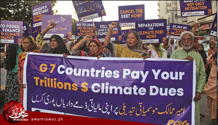 ڪراچي (رپورٽر) فشر فوڪ ۽ سول سوسائٽي جي ميمبرن پاران ڪڍيل ريلي گورنر هائوس کان شروع ٿي ڪراچي پريس ڪلب آڏو پهتي. ريلي پاران گروپ آف جي سيون جي اڳواڻن کان جي سيون جي 50هين سربراهي اجلاس جي موقعي تي ترقي پذير ملڪن کي موسمياتي مالياتي فراهمي جو مطالبو ڪيو، ان موقعي تي ريلي کي خطاب ڪندي پاڪستان فشر فوڪ فورم جي جنرل سيڪريٽري سعيد بلوچ چيو ته موسمياتي تبديلي جو بحران وڌي رهيو آهي، جنهن سبب ٽين دنيا جي گهٽ ترقي يافته ملڪن جا ماڻهو ان جي وڌندڙ تباهي واري اثر جو شڪار ٿي رهيا آهن، سعيد بلوچ وڌيڪ چيو ته، ”گلوبل نارٿ جا امير، ترقي يافته صنعتي ملڪ پنهنجي تاريخي ۽ موجوده گرين هائوس گيس جي خارج ڪرڻ سان هن بحران کي پيدا ڪرڻ جا سڀ کان وڌيڪ ذميوار آهن، پاڪستان فشر فوڪ جي سينيئر وائيس چيئرپرسن فاطمه مجيد چيو ته 2021 ۾ جاري ٿيل يواين ايف سي سي سي جي پهرين نيڊز ڊيٽر مينيشن رپورٽ ۾ ڪاٿو لاڳايو ويو آهي ته 2030 تائين 5.9 کان 11.4 ٽريلين ڊالر تائين گھٽتائي ۽ موافقت جي لاڳت جو اندازو لڳايو ويو آهي. هيومن رائيٽس ڪميشن آف پاڪستان سنڌ جي وائيس چيئرپرسن قاضي خضر پنهنجي خطاب ۾ چيو ته گلوبل سائوٿ کي اربين نه پر ٽريلين جي ضرورت آهي، اسان ان عذر کي رد ڪريون ٿا ته دنيا جون امير ترين قومون پنهنجون ذميواريون پوريون نه ٿيون ڪري سگهن .