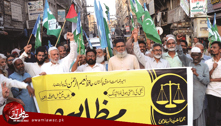 ڪراچي (نمائندن وٽان ) جماعت اسلامي پاران بجلي جي لوڊشيڊنگ ۽ بلن ۾ واڌ خلاف سڄي ملڪ ۾ احتجاج ڪيو ويو، جڏهن ته بجلي جي لوڊشيڊنگ ۽ پاڻي جي بندش خلاف 26 جون تي ڪراچي ۾ شارع فيصل تي ڌرڻي جو اعلان ڪيو ويو آهي. امير جماعت اسلامي حافظ نعيم الرحمان چيو آهي ته ڪنهن به شعبي ۾ گورننس نالي ڪا شيءِ ناهي. راولپنڊي، بهاولپور، اوڪاڙا، گجرات، سانگهڙ، ٿرپارڪر ۽ جيڪب آباد سميت مختلف شهرن ۾ جماعت اسلامي جا ڪارڪن روڊن تي نڪري آيا ۽ لوڊشيڊنگ ۽ بجلي جي بلن ۾ واڌ خلاف احتجاج ڪيو ويو، . احتجاج ڪندڙن چيو ته جيڪڏهن بجلي جي بلن ۾ اضافو واپس نه ورتو ويو ته هو احتجاج جو دائرو وسيع ڪندا. لاهور ۾ ميڊيا سان ڳالهائيندي جماعت اسلامي جي امير حافظ نعيم الرحمان چيو ته لوڊشيڊنگ، بلن ۽ ٽيڪسن خلاف ڀرپور احتجاج ڪيو پيو وڃي. هن چيو ته ملڪ ۾ گورننس نالي ڪا شيءِ ناهي، تاثر ڏنو پيو وڃي ته کير جا درياهه وهايا ويا آهن، حڪومت آءِ پي پيز جي نالي تي 2800 ارب رپيا ڏئي رهي آهي،ڪنهن شعبي کي ڏسون ٿا ته اتي گورننس نالي ڪا شيءِ ناهي. امير جماعت اسلامي ڪراچي منيم ظفر چيو ته جماعت اسلامي 26 جون تي بجلي جي لوڊشيڊنگ ۽ پاڻي جي کوٽ خلاف شارع فيصل تي ڌرڻو هڻندي. هن چيو ته مهانگي بجلي، بدترين لوڊشيڊنگ ۽ پاڻي جي کوٽ خلاف عوام احتجاجي تحريڪ شروع ڪري رهيو آهي. هن چيو ته پيپلز پارٽي گذريل 16 سالن ۾ ترقياتي منصوبن جي نالي تي رڳو ڪرپشن ڪئي آهي.هوڏانهن ڪراچي، حيدرآباد، ٺٽو، جيڪب آباد، ميرپورخاص، لاڙڪاڻو، ٺل، کڏڙو، ٽنڊو آدم، ۽ ٿرپارڪر سميت ٻين ننڍن وڏن شهرن ۾ احتجاجي مظاهرا ڪيا ويا، ٽنڊو آدم ۾ پريس ڪلب آڏو ٿيل احتجاجي مظاهري ۾ جماعت اسلامي جي اڳواڻ راشد نسيم ۽ ٻين خطاب ڪيو، لاڙڪاڻي ۾ جناح باغ کان پريس ڪلب تائين جماعت اسلامي سنڌ جي جنرل سيڪريٽري ڪاشف سعيد شيخ جي اڳواڻي ۾ ريلي ڪڍي وئي، حيدرآباد ۾ گاڏي کاتي کان نور چوڪ تائين عقيل احمد خان جي اڳواڻي ۾ ريلي ڪڍي وئي، ميرپورخاص ۾ حاجي نور الهي مغل جي اڳواڻي ۾ مارڪيٽ چوڪ کان ريلي ڪڍي نعريبازي ڪئي وئي، نوابشاهه ۾ چڪرا بازار چوڪ کان ريلي ڪڍي وئي جنهن جي اڳواڻي ضلعي امير سرور قريشي ڪري رهيو هو، ٺٽي ۾ ايڊووڪيٽ عبدالمجيد سمون جي اڳواڻي ۾ ريلي ڪڍي وئي، جنهن ۾ وڏي انگ ۾ ڪارڪنن شرڪت ڪئي، کڏڙو ۾ سانگهڙ ضلعي جي اڳواڻ ارشد خاصخيلي جي اڳواڻي ۾ ريلي ڪڍي وئي ، ٺل ۾ ابو عبيد مهر جي اڳواڻي ۾ ريلي نڪتي جنهن ۾ وڏي انگ ۾ ڪارڪنن شرڪت ڪئي، سيوڻ ۾ عبدالنبي ۽ علي بوزدار جي اڳواڻي ۾ ريلي ڪڍي نعريبازي ڪئي وئي، ۽ مٺي ٿرپارڪر ۾ ضلعي امير محمد بليدي جي اڳواڻي ۾ احتجاجي ريلي ڪڍي نعريبازي ڪئي وئي.