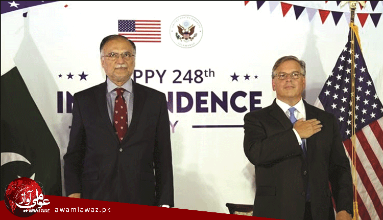 اسلام آباد (م ڊ) آمريڪا جي 248 هين يوم آزادي جي موقعي تي اسلام آباد ۾ آمريڪي سفارتخاني ۾ هڪ رنگارنگ تقريب منعقد  ڪئي وئي، جنهن ۾ ٻنهي ملڪن جي وچ ۾ پائيدار ڀائيواري کي اجاگر ڪيو ويو پنهنجي شهرين کي خوشحال مستقبل فراهم ڪرڻ جو عزم ورجايو ويو. پاڪستان حڪومت جي طرفان تقريب جو خاص مهمان ترقياتي منصوبابندي ۽ خاص قدمن وارو وفاقي وزير احسن اقبال هو.تقريب ۾ پاڪستاني سرڪاري آفيسرن، واپارين، تعليمي ماهرن، سول سوسائٽي جي شخصيتن ۽ سفارتڪارن شرڪت ڪئي ۽ ٻنهي ملڪن جي وچ ۾ آزادي، جمهوريت ۽ معاشي خوشحالي جي گڏيل قدرن تي روشني وڌي وئي. جڏهن ته آتش بازيءَ جي شاندار نمائش جشن آزادي ۾ وڌيڪ رنگ ڀريو.ان موقعي تي ڳالهائيندي آمريڪي سفير ڊونلڊ بلوم چيو ته ٻنهي ملڪن جا لاڳاپا بهتري جي رستي تي آهن، هن چيو ته اڪثر ماضي ۾ ٻنهي ملڪن کي ٻوڏ، جنگ، وبا يا معاشي بحران جهڙين وڏين مشڪلاتن کي منهن ڏيڻو پيو، يوم آزادي جي موقعي تي ٻنهي ملڪن گڏيل بحرانن کي منهن ڏيڻ ۽ روشن مستقبل لاءِ موقعن مان فائدو حاصل ڪرڻ واري ڪوششن جو عزم پڻ ڪيو.