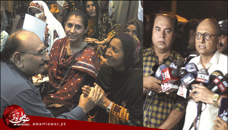 ڪراچي: ان موقعي تي عوامي آواز جي چيف ايڊيٽر ڊاڪٽر جبار خٽڪ امان جي مٿي تي هٿ رکي کيس ٻڌايو ته عوامي آواز ميڊيا گروپ قاتلن جي گرفتاري لاءِ امان پٺاڻي سان گڏ آهي.