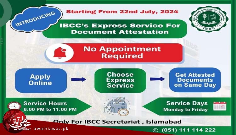 پڌرائي ۾ ٻڌايو ويو آهي ته وڌيڪ ايڪسپريس سروس صرف IBCC سيڪريٽريٽ اسلام آباد ۾ موجود آهي.
