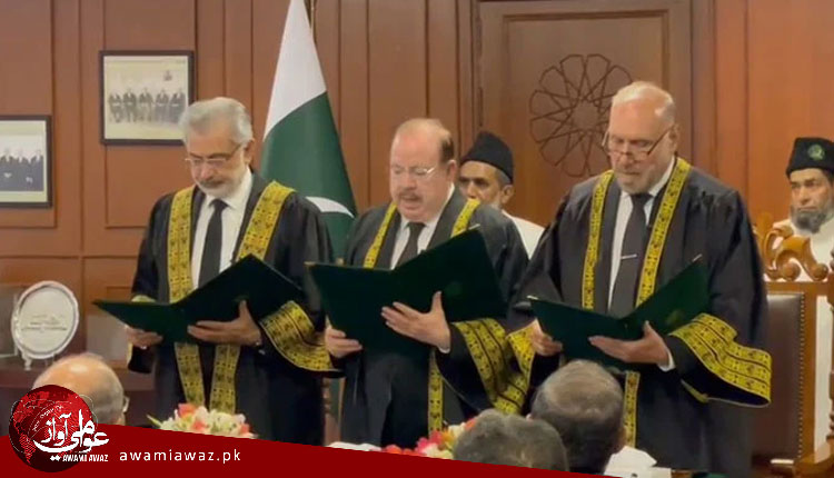 چيف جسٽس قاضي فائز عيسيٰ، جسٽس رٽائرڊ سردار طارق مسعود ۽ جسٽس رٽائرڊ مظهر عالم ميان خيل کي سپريم ڪورٽ جي ايڊهاڪ جج طور قسم کڻايو.