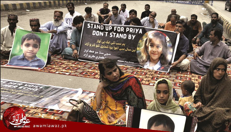 ڪراچي ۾ پريا ڪماري، نويد لاشاري ۽ سويرا چانڊيو جي بازيابي لاءِ ڌرڻو