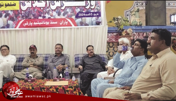 سڪرنڊ(رپورٽ: راج ڪمار اوڏ) سنڌ يونائيٽيڊ پارٽي ضلعي نوابشاھ جو ورڪز اجلاس مرڪزي صدر سيد زين شاھ جي صدارت هيٺ سنڌ پيليس سڪرنڊ ۾ منعقد ڪيو ويو جنهن ۾ پارٽي جي ڪارڪردگي پڻ پيش ڪئي وئي روشن علي ٻرڙو، منير نائچ. جڳديش آهوجا ، حافظ زين ڀٽو ، غلام مصطفيٰ ڪيريو ، مجيب ماڇي ، اسلم ڪوريجو ۽ ٻين خطاب ڪيو، آخر ۾ ايس يو پي جي مرڪزي صدر سيد زين شاھ خطاب ڪندي چيو ته گذريل هٿرادو اليڪشن ذريعي جعلي نتيجا آڻڻ جون حقيقتون پوري سنڌ ۾ در در وڃي پهچائي رهيا آهيون ملڪ جو آئين ٺاهڻ ۾ صوبن جي حقن جي پائمالي ۽ 40 واري قرارداد کي نه مڃڻ واري صورتحال پيدا ڪئي وئي آهي هن چيو ته جڏھن ملڪ غريب ٿيندو آهي تڏھن عام ماڻھو به غريب ٿي ويندو آهي هن وقت پيداگير حڪمرانن ۽ سياسي ماڻھن ملڪ کي ڪمزور ڪري ڇڏيو آهي جڏھن ته سنڌ جا قدرتي وسيلا زمينون ، ٻيلا ، ٻيٽ ۽ ٻيا وسيلا وڪرو ڪري پنهنجو بڀ ڀري رهيا آهن جنهن جي جي اسان نه صرف سخت مذمت ڪيون ٿا پر ان کي روڪڻ جي ڀرپور ڪوشش به ڪنداسين ۾ مزاحمت به ڪنداسين سيد زين شاھ اهو به چيو ته پوليس ذريعي سياست ڪرڻ ۽ خاص ڪري اتر سنڌ ۾ ماڻھن کي ڀوتارن ذريعي هيسايو پيو وڃي اسين انهن خلاف نڪتا آهيون ان کان اڳ تعلقه صدر ايوب کوسو آيل مهمانن کي آجياڻو پيش ڪيو جڏھن ته قاسم سومرو ، چڱل خان انڙ ، علي سومرو ، شوڪت ميمڻ ، محمد بچل ڏھيو ، محمد خان گدارو سميت پارٽي ورڪرن آيل مهمانن جو آڌر ڀاءُ ڪيو اجلاس دوران قومي ورڪر شاهنواز خاصخيلي قومي گيت پيش ڪيو
