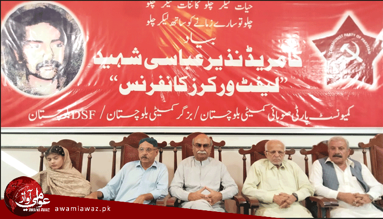 جعفرآباد(ن ع آ) بلوچستان جو مسئلو سياسي، معاشي ۽ سماجي آھي. فوجي ناھي ۽ فوجي آپريشن سان حل نه ٿيندو. انھن مسئلن کي حل ڪري ئي بلوچستان ۾ امن قائم ڪري سگھبو. فوجي طور تي ته ھن کي 4 دفعا پھرين حل ڪرڻ جي ڪوشش ڪئي ويئي ۽ ھاڻي به 18 سالن کان فوجي حل ڪڍڻ جي ڪوشش ڪئي پئي وڃي، ڇا مسئلو حل ٿيو آھي. اھي ڳالھيون ڪميونسٽ پارٽي آف پاڪستان جي سيڪريٽري جنرل ڪامريڊ امداد قاضي پريس ڪلب ۾ شهيد نذير عباسي جي ياد۾ ليفٽ ورڪرز ڪانفرنس کي خطاب ڪندي چيون. ھن وڌيڪ چيو ته سڀ کان وڌيڪ قدرتي وسيلن سان مالا مال صوبو بلوچستان آھي ۽ اسمگلنگ سان روزانو اربين رپين جي ڪمائي گڏ ٿيندي آھي. انھي ڪري رياست حالتون خراب ڪري سيڪيورٽي فورسز کي بلوچستان ۾ رکڻ چاھي ٿي عوام جي حقيقي نمائندن کي اقتدار جي منتقلي ڪري  ايجنسين جي مداخلت  روڪي وڃي بلوچستان جي وسيلن کي سردارن ۽ جنرلن جي ملڪيت وڌائڻ بدران عام عوام جي حالتن کي بدلائڻ لاءِ استعمال ڪرڻ سان حالتون بھتري جي طرف وڃي سگھن ٿيون،هن چيو ته اشرافيه سموري ملڪ جي عوام کي مھانگائي ۽ بيروزگاري جي عذاب ۾ مبتلا ڪري ڇڏيو آھي. نوجوان لکن جي تعداد ۾ ملڪ ڇڏي رھيا آھن. بجلي جا بل ڏسي عام ماڻھو خودڪشيون ڪري رھيا آھن. پروفيسر منور ٽالپور چيو ته ڪامريڊ نذير عباسي شهيد قومي استحصال ، جبر ۽ محنت ڪش طبقن جي استحصال کان نجات لاءِ وڙھندي پنھنجي جان جو نذرانو ڏنو. اسانکي استحصالي نظام کي ختم ڪري سوشلسٽ نظام قائم ڪرڻو پوندو. نيڪ محمد ڪاڪڙ چيو ته قومي ۽ طبقاتي مسئلا پ پ، ن ليگ، عمران يا ڪنھن قوم پرست پارٽي کان حل نه ٿيندا. اھي سوشلسٽ انقلاب سان ئي حل ٿيندا. ڪامريڊ اقبال چيو ته مظلوم قومن ۽ طبقن کي متحد ٿي انھن حڪمرانن کان نجات حاصل ڪرڻ لاءِ انقلابي طبقاتي جدوجھد ڪرڻي پوندي. فرھاد رند پنھنجي خطاب ۾ چيو ته برساتي رستن تي قبضا ٿي ويا آھن سمورو نصيرآباد برساتي پاڻي سان ٻڏي ويو آھي، انھي کان سواءِ ڪامريڊ فائزہ فرھاد رند، فضيلا صديق بلوچ ۽ ٻين مقررن ڪامريڊ نذير عباسي شهيد جي جدوجهد تي روشني وڌي.