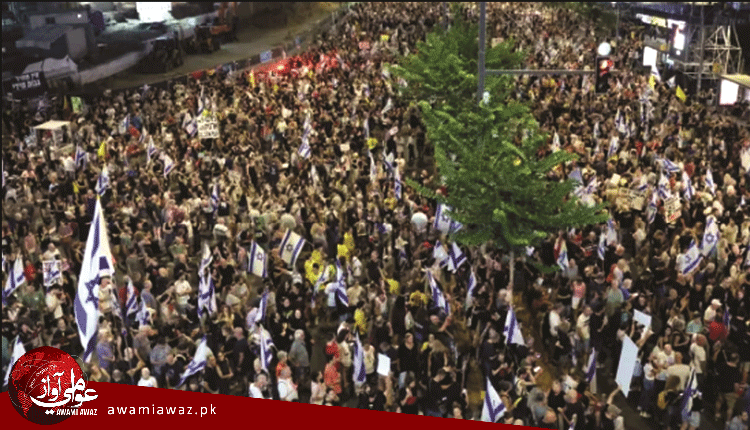 تل ابيب (م ڊ)اسرائيل ۾ حماس وٽ قيد يرغمالين جي واپسي لاءِ وڏو احتجاجي مظاهرو رڪارڊ ڪرايو ويو، جنهن دوران احتجاج ڪندڙن اسرائيلي وزيراعظم نيتن ياهو کان استعيفيٰ جو مطالبو ڪيو آهي. اسرائيلي دارالحڪومت تل ابيب ۾ يرغمالين جي وارثن سميت لکين ماڻهن احتجاج ۾ شرڪت ڪئي. احتجاج ڪندڙن نيتن ياهو کي تنقيد جو نشانو بڻائيندي چيو آهي ته پنهنجي ڪرسيءَ بچائڻ لاءِ يرغمالين جي حياتين کي داءُ تي لڳائي پيو وڃي. هوڏانهن آمريڪا پاران اسرائيل ۽ حماس وچ ۾ جنگبندي جي نئين تجويز کي حتمي شڪل ڏيڻ جون ڪوششون جاري آهن، تنهن هوندي، آفيسرن کي انهن تجويزن جي منظوري لاءِ وڏي اميد نه آهي ۽ اڃا تائين اهو فيصلو نه ڪيو آهي ته انهن تجويزن کي ڪڏهن ظاهر ڪيو ويندو.