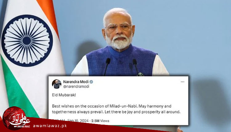 نئين دهلي(ويب ڊيسڪ) ڀارتي وزيراعظم نريندر موديءَ طرفان عيد ميلاد النبي صلعم جي موقعي تي مبارباڪ جو پيغام ڏنو ويو آهي.