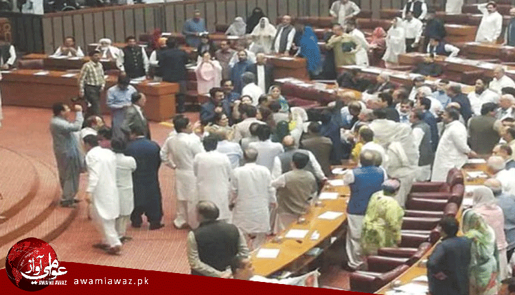 قومي اسيمبلي اجلاس ۾ حڪومت طرفان مختلف بل ضمني ايجنڊا ذريعي آندا ويا، جنهن دوران اپوزيشن گوڙ ڪيو، اپوزيشن ميمبرن اسپيڪر ڊائس جو گهيرو ڪيو ۽ بل جون ڪاپيون ڦاڙي ڇڏيون.