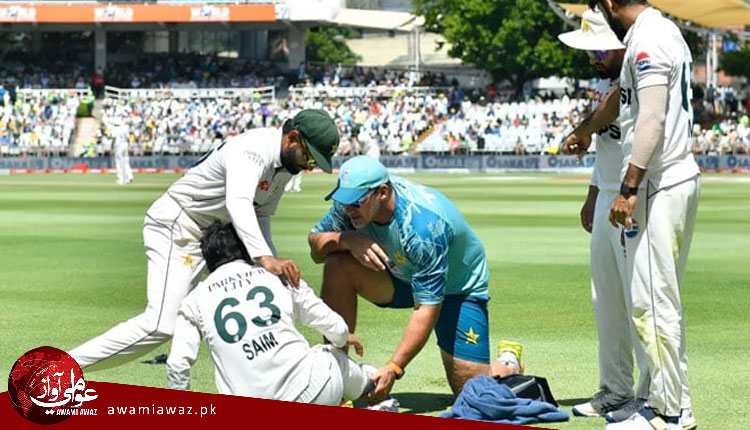 ڪيپ ٽائون (ويب ڊيسڪ ) ڏکڻ آفريڪا خلاف ڪيپ ٽائون ٽيسٽ ۾ قومي ٽيم جو اوپننگ بيٽر صائم ايوب انجري جو شڪار ٿي ويو.