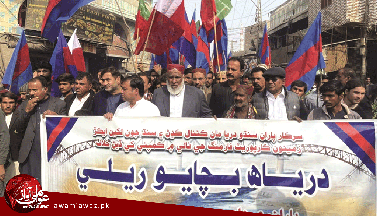 ميھڙ (رپورٽ: فراز چنا)سنڌو درياهه مان ڪئنال ڪڍڻ ڪارپوريٽ فارمنگ جي نالي تي سنڌ جي زمينن کي نيلام ڪرڻ واري فيصلي کي ميھڙ جي عوام رد ڪري ڇڏيو عوامي جمھوري پارٽي پاران ڪئنال ڪڍڻ ۽ زمينن جي نيلامي خلاف راڌڻ اسٽاپ کان پنج ڪلو ميٽر پيادل مارچ ڪري گھنٽا گھر چوڪ ۽ نيشنل پريس ڪلب ميھڙ تائين مرڪزي جنرل سيڪريٽريءَ سيد لعل شاھ ايڊووڪيٽ،ضلع صدر وڪيل سعيد پنھور،منظور مھيسر،اقرار چانڊيو ايڊووڪيٽ لياقت علي ملڪ،سينگار چانڊيو،بصير ڳورڙ ۽ ٻين جي اڳواڻي ۾ ريلي ڪڍي پيادل مارچ ڪيو ويو مارچ ۾ سياسي سماجي تنظيمن جي اڳواڻن،صحافين ،وڪيلن،سول سوسائٽي جي اڳواڻن شھري اتحاد جو چيئرمين نياز علي ٻرڙو،ايس يو پي ضلعي صدر سڪندر سوڍر،پي ٽي آءِ تعلقي صدر محمد ايوب کوسو ،عوامي پورھيت تحريڪ جي اڳواڻ وڪيل پنھل کوسو،ميھڙ فورم جي اڳواڻ وڪيل ذوالفقار کوکر،شاگرد اڳواڻ علي رضا بروھي ، مير شڪيل، مير عمران تيوڻو، وڪيل رضوان حيدر، وڪيل رحيم بخش ٻگھيو،وڪيل اسحاق احمد،وڪيل لياقت ملڪ سميت سوين شھرين شرڪت ڪئي،ريلي مٿان شھر جي مختلف چوراھن تي گلن جي ورکا ڪئي وئي،عوامي ميڙ کي خطاب ڪندي عوامي جمھوري پارٽي جي مرڪزي جنرل سيڪريٽري سيد لعل شاھ چيو ته پ پ پ ٻٽي پاليسي اختيار ڪئي آھي ھو ڪئنال ڪڍڻ ۾ ڀاڱي ڀائيوار آھي درياء جا وارث سنڌي آھن سنڌين کان زندگي کسي پئي وڃي، زرداري ٽولو سنڌ جون زمينون وڪرو ڪري رھيو آھي سنڌو مان ڪئنال ڪڍڻ وارو فيصلو ڪنھن به ريت قبول ناھي،نياز علي ٻرڙو چيو ته پ پ پ سنڌين کان ووٽ وٺي سنڌ سان ويساھ گهاتي ڪري رھي آھي،ريلي کي وڪيل سعيد پنھور ، ايوب کوسو،علي رضا بروھي ،وڪيل پنھل کوسو،وڪيل ذوالفقار کوکر،منظور مھيسر،علي شير ڳورڙ،بصير ڳورڙ، ممتاز سومرو،ممتاز سڪندر لاکير ۽ ٻين پڻ خطاب ڪيو.