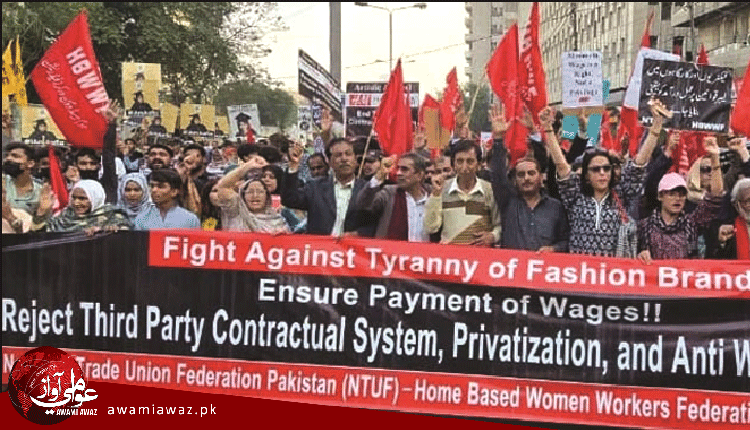 ڪراچي( رپورٽر) مختلف مزدور تنظيمن، سول سوسائٽي ۽ سياسي اڳواڻن مطالبو ڪيو آهي ته سنڌ کي برپٽ بڻائڻ لاءِ سنڌو درياهه مان ڪئنال ڪڍڻ جي سازش بند ڪئي وڃي، سنڌ جو ليبر وزير تبديل ڪيو وڃي، فيڪٽرين مان مزدورن جون ڇانٽيون بند ڪري اتي مزدور قانون لاڳو ڪيا وڃن، اٽو، گيهه، ساين ڀاڄين سميت روزمره جي شين جا اگهه گهٽايا وڃن، اها ڳالهه ڪالهه شام جو ٽريڊ مزدور يونين ۽ گهرن ۾ ڪم ڪندڙ عورتن جي تنظيم طرفان ڪراچي پريس ڪلب اڳيان احتجاجي مظاهرو ڪندي ڪئي وئي،ان موقعي تي ناصر منصور، عبدالخاق جوڻيجو،زھرا خان،ڊاڪٽر جئپال ڇاپڙيا،حبيب جنيدي،منظور رضي ۽ ٻين تقريرون ڪندي چيو ته سنڌو درياهه مان ڪئنال ڪڍڻ ۽ سنڌ کي ريگستان ۾ تبديل ڪرڻ جو مسئلو سنڌ ۽ پاڪستان جي مزدورن ۽ هارين جو مسئلو آهي، جنهن خلاف احتجاج ڪيو ويندو، هنن چيو سنڌ حڪومت جي ليبر وزير وٽ مزدور تنظيمن جي اڳواڻن سان ملڻ ۽ مزدورن جي مسئلن کي ٻڌڻ لاءِ وقت نه آهي، ان ڪري ان هٽائي ٻيو مزدور وزير مقرر ڪيو وڃي هنن وڌيڪ چيو ته ملڪ ۾ وڌندڙ بي روزگاري ۽ مهانگائي ڪري مزدورن، هارين ۽ ٻين غريبن جي زندگي عذاب بڻائي وئي آهي، ان لاءِ فوري طور روزمره جي شين جا اگهھ گهٽايا وڃن، فيڪٽرين ۽ ٻين نجي ادارن مان ٺيڪيداري نظام ختم ڪري اتي مزدور قانون نافد ڪيا وڃن. مزدور اڳواڻن چيو ته پاڪستان جي معيشيت ۾ مزدورن جو اھم ڪردار آھي،پر مزدور بنيادي سھولتن کان محروم آھن، سرڪار جي مقرر ڪيل گھٽ ۾ گھٽ اجرت واري فيصلي تي به حڪومت عمل نٿي ڪري،سرڪار پاران مقرر ڪيل روزاني ڏهاڙي تي 90 سيڪڙو عمل ڪونه پيو ٿئي،هنن چيو ته اڄ جو پورهيت مهانگائي ۽ گهٽ اجرت ملڻ سبب فاڪاشي کي منهن ڏئي رهيو آهي وفاق سنڌ جي ڪوئلي گيس سميت قدرتي وسيلن تي قبضا ڪرڻ بعد سنڌو درياهه تي ڪينال ڪڍي ڪروڙين ماڻهن کي مارڻ چاهي ٿو سنڌو درياءَ تي ڪينال ڪڍڻ واري فيصلي کي رد ڪيون ٿا اسان سنڌي درياهه جا وارث آهيون، ھنن مطالبو ڪيو ته ٺيڪيداري ۽ نجڪاري سميت مزدور دشمن پاليسون ختم ڪري فيڪٽرين ڪارخانن اندر مزدور يونين بحال ڪري سمورن مزدورن کي سماجي تحفظ ڏنو وڃي.