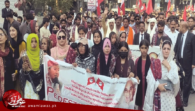 ڪئنالن ۽ ڪارپوريٽ فارمنگ خلاف جسقم آريسر جو لانگ مارچ حيدرآباد پهتو،شاندار آجيان