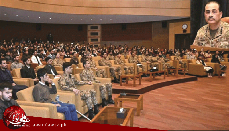 راولپنڊي(م ڊ) پاڪ فوج جي سربراهه جنرل عاصم منير چيو آهي ته پاڪستاني عوام خاص ڪري نوجوانن جو پاڪ فوج سان تمام گهرو رشتو آهي. ملڪ دشمن عنصرن جي فوج ۽ عوام ۾ خال پيدا ڪرڻ جي ڪوشش هميشه ناڪام ٿيندي. پاڪ فوج جي عام لاڳاپن واري شعبي (آءِ ايس پي آر) طرفان جاري ڪيل بيان موجب آرمي چيف جنرل عاصم منير مختلف يونيورسٽين ۽ ڪاليجن جي شاگردن کي خطاب ڪندي نوجوانن جي توانائي، تخليقي صلاحيتن ۽ جدت جي واکاڻ ڪئي. پاڪ فوج جي ترجمان موجب آرمي چيف شاگردن کي خطاب ڪندي ٻاهرين ماحول جي پاڪستان تي اثرن خاص طور تي سرحد پار کان دهشتگردي جي خطرن تي به خيالن جي ڏي وٺ ڪئي. پاڪ فوج جي سربراهه نوجوانن کي پاڪستانيت جو جذبو اختيار ڪرڻ تي زور ڏيندي چيو ته نوجوان پنهنجي تعليم تي خاص ڌيان ڏين ۽ ملڪ جي ترقي ۾ ڪردار ادا ڪن. پاڪ فوج جي ترجمان موجب جنرل عاصم منير نوجوانن جي توانائي، تخليقي صلاحيتن ۽ جدت جي واکاڻ ڪندي چيو ته اسان جا نوجوان پاڪستان جا مستقبل جا ليڊر آهن. آءِ ايس پي آر موجب آرمي چيف پنهنجي خطاب ۾ ملڪ جي خودمختياري ۽ جاگرافيائي سالميت جي تحفظ ۾ پاڪ فوج جي ڪردار کي اجاگر ڪيو. جنرل عاصم منير چيو ته کيس پنهنجي مذهب، تهذيب ۽ روايتن تي فخر آهي، هو فتنا خوارج کي ملڪ تي فرسوده سوچ مسلط ڪرڻ نه ڏيندا.