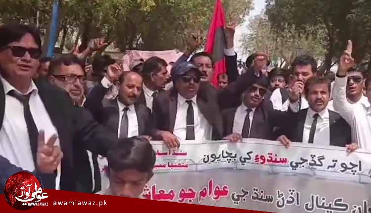 سکر(رپورٽ:آزاد مهر)سنڌ هاءِ ڪورٽ بار ايسوسيئيشن ۽ ڊسٽرڪٽ بار ايسوسيئيشن سکر پاران سنڌو درياهه مان غيرقانوني ڪئنال  ڪڍڻ ۽ ڪارپوريٽ فارمنگ خلاف پرامن احتجاجي ريلي ڪڍي وئي. ريلي ضلعي بار سکر کان شروع ٿي سکر پريس ڪلب کان ٿيندي زيرو پوائنٽ سنڌو  درياھ جي مقام تي ختم ٿي ريلي ۾ وڪيلن جي وڏي انگ شرڪت ڪئي. احتجاجي ريلي جي قيادت سينئر وڪيل سپريم ڪورٽ شبير شر، صدر هاءِ ڪورٽ بار ايسوسيئيشن قربان علي ملاڻو، صدر ڊسٽرڪٽ بار ايسوسيئيشن سيد نويد احمد شاهه، جنرل سيڪريٽري هاءِ ڪورٽ بار ايسوسيئيشن آچر خان گبول ۽ جنرل سيڪريٽري ڊسٽرڪٽ بار ايسوسيئيشن سندر خان چاچڙ ڪري رهيا هئا.احتجاج ريلي ۾ شامل  وڪيلن جي هٿن ۾ بينر ۽ پلي ڪارڊ کنيل هئا جن مٿان سنڌو درياهه جي پاڻي جي حقن جي تحفظ، پاڻي جي منصفاڻي ورڇ ۽ غير قانوني ڪئنالن جي خاتمي جي حق ۾ نعرا لکيل هئا، احتجاجي ريلي کي خطاب ڪندي وڪيلن جي اڳواڻن چيو ته سنڌ کي ان جي پاڻي جي جائز حقن کان محروم ڪيو پيو وڃي جنهن سبب صوبو سخت پاڻي جي بحران ڏانهن وڌي رهيو آهي، ارسا (انڊس ريور سسٽم اٿارٽي) جي ضابطن ۽ پاڻي جي ورهاست جي معاهدن جي ڀڃڪڙي ٿي رهي آهي جنهن جي نتيجي ۾ سنڌ ۾ پاڻي جي سخت کوٽ، ڏڪار، زراعت ۽ معيشت تي تباهه ڪندڙ اثر پيو آهي، هاءِ ڪورٽ بار ايسوسيئيشن جي صدر قربان علي ملاڻو چيو ته سنڌو درياءَ تي غير قانوني ڪينال ڪڍي سنڌ جي عوام سان ناانصافي ڪئي پئي وڃي جيڪا ڪنهن به صورت ۾ قبول ناهي. هن وڌيڪ چيو ته اسان هر فورم تي سنڌ جي پاڻي جي حق لاءِ آواز بلند ڪنداسين ۽ ڪنهن به غير قانوني قدم خلاف قانوني ڪارروائي کان پاسو نه ڪنداسين،