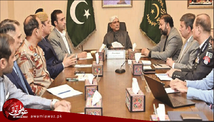 ڪوئيٽا (م ڊ) صدر آصف علي زرداري چيو آهي ته دهشت گردن کي هر قيمت تي شڪست ڏني ويندي ۽ قوم کي ورهائڻ جي هر ڪوشش ناڪام ٿيندي، دهشت گردي خلاف رياست جو مؤقف بلڪل واضح آهي ۽ ان جنگ کي کٽڻ اڻٽر آهي، ڪالهه ڪوئيٽا ۾ صدر آصف علي زرداري جي صدارت امن امان جي صورتحال تي اجلاس ٿيو، جنهن ۾ پ پ چيئرمين بلاول ڀٽو زرداري خصوصي طور تي شرڪت ڪئي، جڏهن ته وزيراعلي بلوچستان مير سرفراز بگٽي صوبي جي مجموعي سيڪيورٽي صورتحال تي تفصيلي بريفنگ ڏني، اجلاس ۾ خطاب ڪندي صدر آصف علي زرداري چيو ته بلوچستان منهنجي دل جي ويجهو آهي ۽ هتي ترقي ۽ پائيدار امن اسان جي اولين ترجيحن ۾ شامل آهي، هن هر ٻار کي اسڪول ۾ ڏسڻ جي خواهش جو اظهار ڪندي نوجوانن کي جديد ٽيڪنالاجي سان ليس ڪرڻ جي ضرورت تي زور ڏنو، صدر زرداري اعلان ڪيو ته دهشت گردي خلاف مؤثر ڪارروائي لاءِ ڪائونٽر ٽيررازم ونگ کي جديد هٿيار فراهم ڪيا ويندا  ته جيئن هو ڏوهارين ۽ دهشت گردن خلاف سخت ڪارروائي ڪري سگهي، صدر زرداري بلوچستان ۾ پارليماني جماعتن جي اڳواڻن سان به ملاقات ڪئي، جنهن ۾ بلاول ڀٽو زرداري پڻ موجود هو، ان ملاقات ۾ اپوزيشن اڳواڻن ۽ مختلف جماعتن جي پارليماني اڳواڻن عوامي ڀلائي ۽ صوبي کي درپيش چئلينجز بابت تجويزون پيش ڪيون، ان موقعي تي صدر زرداري چيو ته بلوچستان جي عوام سان منهنجو خاص تعلق آهي ۽ پاڪستان کي اڳتي وٺي وڃڻ لاءِ قومي يڪجهتي ضروري آهي، بلوچستان جي عوام جا سمورا حق ڏنا ويندا ۽ زبردستي بدران عوام جون دليون کٽي کين حق ڏنا ويندا، صدر اعلان ڪيو ته عيد کان پوءِ عوام جا مسئلا ٻڌڻ ۽ تجويزون حاصل ڪرڻ لاءِ بلوچستان ۾ خصوصي ڪيمپ لڳائي ويندي، اجلاس ۾ بلوچستان جي وتي گورنر ڪپٽن (ر) عبد الخالق اچڪزئي، چيف سيڪريٽري شڪيل قادر خان، آءِ جي پوليس معظم جاهه انصاری ۽ ٻين اعليٰ اختيارين شرڪت ڪئي، ان کانسواءِ بلوچستان اسيمبلي ۾ اپوزيشن ليڊر مير يونس عزيز زهري، نيشنل پارٽي جي سربراهه ڊاڪٽر عبدالمالڪ بلوچ، مسلم ليگ (ن) جي پارليماني ليڊر مير سليم خان کوسي، عوامي نيشنل پارٽي جي انجنيئر زمرڪ خان اچڪزئي، جماعت اسلامي جي مير عبدالمجيد بديني، صوبائي وزيرن، پارليماني سيڪريٽرين ۽ بلوچستان ڪابينا جي ميمبرن پڻ شرڪت ڪئي، صدر زرداري کين يقين ڏياريو ته بلوچستان جي ڀلائي لاءِ کنيل سڀئي قدم مثبت نتيجا ڏيندا ۽ اهي فيصلا ڪيا ويندا جيڪي تاريخ ۾ ياد رکيا ويندا.
