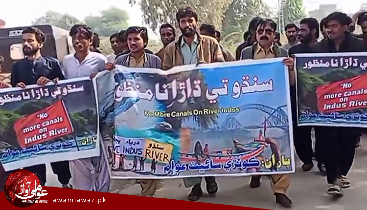 ڪوٽڙي (ن ع آ) تڪراري ڪئنالن خلاف رهواسين جو ايم نائن موٽروي تي احتجاج ڌرڻو گلشن شهباز جي رهواسين حڪيم کوهارو،شاهنواز چانڊيو، فيصل برفت، مست علي مگسي، مبارڪ رودناڻي جي اڳواڻي ۾ ايم نائن موٽروي وي تي احتجاج ڪري ڌرڻو هنيو ويو،ڏنڊا بردار مظاهرين جي احتجاجي ڌرڻي سبب ڪراچي ڏانهن ويندڙ گاڏيون بيهجي ويون، مظاهرين جو چوڻ آهي ته پنجاب وفاق جي نالي تي سنڌ جي سمورن معدني وسيلن تي قابض آهيهاڻ هو سنڌو درياھ جي پاڻي تي قبضو ڪري رهيا آهن جنهن سان سنڌ بنجر بڻجي ويندي،هنن چيو ته وفاق فوري طور فيصلو واپس وٺي ٻي صورت ۾ سخت احتجاج ڪنداسين،