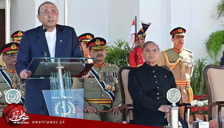 ايوان صدر ۾ يوم پاڪستان جي فوجي پريڊ کي خطاب ڪندي آصف علي زرداري چيو ته پاڪستان جاگرافيائي سياسي چيلينجن کي منهن ڏئي رهيو آهي، جڏهن ته ان جي بهادر فوج قوم جي سهڪار سان بي مثال قربانيون ڏئي رهي آهي.