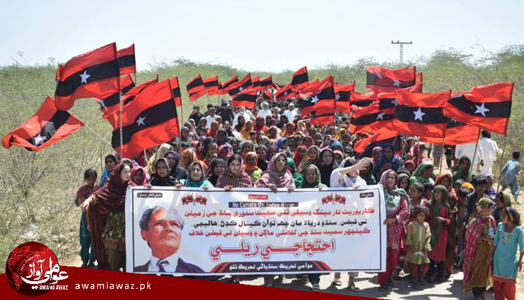 جنگشاهي/ٺٽو (نمائندا) ڇهه نون ڪئنالن، ارسا ايڪٽ ۾ ترميم ۽ ڪارپوريٽ فارمنگ خلاف عوامي تحريڪ ۽ سنڌياڻي تحريڪ طرفان ڳوٺ منگر خان پليجو ۾ رسول بخش پليجي جي آخري آرامگاهه کان جنگشاهي شهر تائين هزارين عورتن ۽ مردن جي ريلي ڪئي وئي، سنڌوءَ خاطر جهيڙو آ، زمينن تي قبضا بند ڪريو، ڪارپوريٽ فارمنگ منصوبا ختم ڪريو، ايس آءِ ايف سي ختم ڪريو، جمهوريت بحال ڪريو جا زورار نعرا هنيا ويا. ارسا ۾ پاڻيءَ جي ورهاست واري ٽي رخي فارمولي کي آئين ۽ قانون جو قتل قرار ڏنو ويو. مظاهري کي خطاب ڪندي عوامي تحريڪ جي مرڪزي رابطه سيڪريٽري لال جروار، مرڪزي اڳواڻ عبدالقادر رانٽو، رزاق چانڊيو، شاهه محمد چانگ، مٺا خان لاشاري، گهنور خان زئور، بلاول لاشاري، دريا خان زئور، سلمي لاشاري، سائرہ رزاق، زويا پليجو، ثمينا لاشاري ۽ ٻين چيو ته ارسا جي ٽيڪنيڪل ڪميٽي جي اجلاس ۾ چولستان ڪئنال جي اين او سي واپس وٺڻ جو فيصلو نه ڪري ارسا ست ڪروڙ سنڌين جي نسل ڪشي جي سازش تي قائم آهي، ارسا ۾ سنڌ جي نمائندي چولستان ڪئنال جي اين او سي واپس وٺڻ مطالبو به نه ڪيو، پيپلز پارٽي ارسا ۾ سنڌ جي نمائندي کي سنڌ جو ڪيس وڙهڻ کان روڪي ڇڏيو آهي، پيپلز پارٽي ڳجهه ڳوهه ۾ سنڌو درياهه وڪرو ڪري ڇڏيو آهي، صدر زرداري ڊراما ڪرڻ بند ڪري. ارسا ايڪٽ ۾ ترميم ۽ ڇهه نون ڪئنالن جي منظوري واپس وٺڻ جو نوٽيفڪيشن جاري ڪري يا صدارتي سيٽ تان استيفعا ڏئي، پيپلز پارٽي جيڪڏهن ڇهه نوان ڪئنال رد ڪرائي سنڌو درياهه بچائڻ جي اهليت نٿي رکي ته سنڌ حڪومت تان استيفعا ڏئي، حڪومت ڇڏي ڏئي. هنن چيو ته اسين سنڌي قوم کي سلام پيش ڪريون ٿا جنهن 25 مارچ واري پيپلز پارٽي جي ڊامي کي فلاپ ڪري ڇڏيو، بلاول زرداري عوامي غصي ۽ ڪاوڙ کي منهن ڏيڻ بدران منهن لڪائي ڀڄي ويو ۽ ڪنهن به احتجاج ۾ شريڪ نه ٿيو،