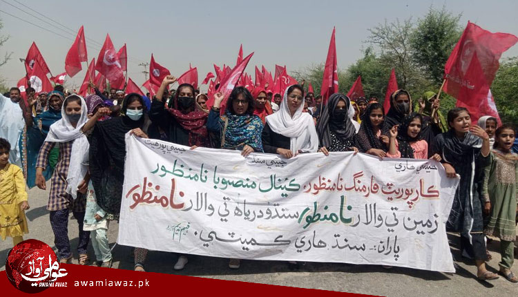 چمبڙ (رپورٽ: ثوبيا کوسو) چمبڙ ۾ ڪميونسٽ پارٽي آف پاڪستان ۽ سنڌ هاري ڪميٽي طرفان ڪارپوريٽ فارمنگ ۽ دريائن مان نوان ڪئنال ڪڍڻ خلاف سيڪريٽري جنرل امداد قاضي، ارباب رستماڻي، گلاب ڀيل، ڪلثوم جمال ۽ انيلا قادري جي اڳواڻي ۾ احتجاجي ريلي شڪور ميمڻ فارم کان چمبڙ جي مين چوڪ تائين ڪڍي وئي، جنهن ۾ سوين عورتن ۽ ٻارن شرڪت ڪئي، مين چوڪ تي ريلي جلسي جي شڪل اختيار ڪري وئي، ريلي کي ڪامريڊ امداد قاضي خطاب ڪندي چيو ته ڪارپوريٽ فارمنگ پوري ملڪ تي سرمائيدار ڪمپنين جي قبضي جي سازش آهي، انهن زمينن کي آباد ڪرڻ لاءِ نوان ڪئنال ڪڍيا پيا وڃن، دريائن ۾ پاڻي ڪونهي، خريف جي فصل لاءِ حڪومت چوي پئي ته پاڻي ڪونهي فصل نه پوکيو ته پوءِ هنن ڪئنالن لاءِ پاڻي ڪٿان ايندو، پنجاب ۽ سنڌ جي بهترين زرخيز زمينن کي پاڻي کان محروم ڪري غير آباد ڪري نيون زمينون آباد ڪيون پيون وڃن، سنڌ کي ته پيئڻ جو پاڻي به نه ملندو. ان لاءِ هن جدوجهد کي وڌيڪ تيز ڪيو وڃي، ڪامريڊ ڪلثوم چيو ته هڪ طرف ملڪ کي برباد ڪيو پيو وڃي، وري ويتر صوبن جي عوام کي پاڻ ۾ ويڙهايو پيو وڃي، ڪامريد ارباب رستماڻي چيو ته درياهه اسانجي زندگي ۽ موت جو مسئلو آهي اسين نوان ڪئنال ٺهڻ نه ڏينداسين، ڪامريڊ انيلا قادري چيو ته بلوچستان ۽ پختونخوا ۾ جنگ پئي هلي پوءِ به پاڪستان جي اشرافيه هي منصوبا شروع ڪري سنڌ ۽ پنجاب کي به جنگ جو ميدان بنائڻ چاهي ٿي، انهن کان سواءِ ثوبيا کوسو، گلاب ڀيل، ڪنول رستماڻي ۽ فرحانه سولنگي پڻ ريلي کي خطاب ڪيو، ريلي ۾ دريائن مان نوان ڪئنال نامنظور، ڪارپوريٽ فارمنگ نامنظور، زمينن ۽ دريائن تي قبضو نامنظور جا نعرا هنيا ويا، مطالبو ڪيو ويو ته ڪارپوريٽ فارمنگ واريون سڀ زمينون پوري ملڪ ۾ بي زمين مقامي هارين کي ڏنيون وڃن.