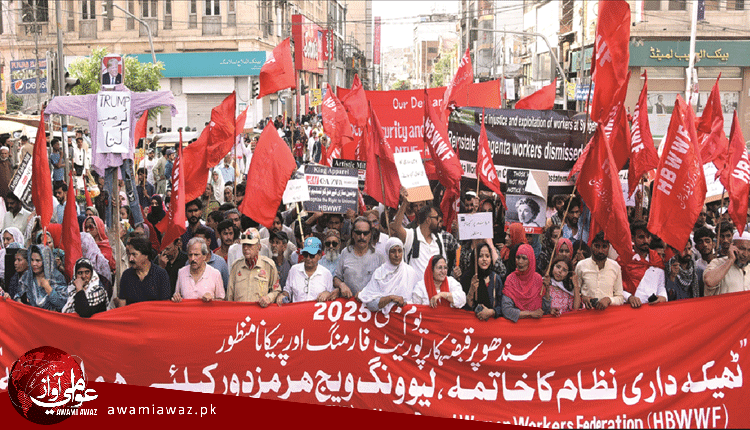 حيدرآباد(رپورٽر) مزدورن جي عالمي ڏينهن جي موقعي تي آل سنڌ ليڊي هيلٿ ورڪرز اينڊ ايمپلائيز يونين پاران پبلڪ سروس انٽرنيشنل (پي ايس آءِ) ۽ ورڪرز ايجوڪيشن اينڊ ريسرچ آرگنائيزيشن (ڊبليو اي آر او) جي سهڪار سان حيدرآباد ۾ واڪ ڪري سنڌي لئنگيج اٿارٽي جي ڊاڪٽر نبي بخش بلوچ هال ۾ ڪانفرنس ڪوٺائي وئي، ڪانفرنس ۾ وڏي انگ ۾ ليڊي هيلٿ ورڪرن، ليڊي هيلٿ سپروائيزرن، ڊرائيورن، ٽريڊ يونين جي نمائندن ۽ استادن سميت سول سوسائٽي جي اڳواڻن ۽ ليکڪن وڏي انگ ۾ شرڪت ڪئي، ڪانفرنس ۾ مقررن ليڊي هيلٿ ورڪرز جي ڪم دوران ناقص حالتن ۽ سهولتن جي کوٽ جي مسئلن تي ڳالهه ٻولهه ڪئي، ان موقعي تي نامياري دانشور جامي چانڊيو، نامياري ليکڪه ۽ عورت اڳواڻ امر سنڌو، ايڇ آر سي پي جي وائيس چيئرپرسن قاضي خضر، آل سنڌ ليڊي هيلٿ ورڪرز اينڊ ايمپلائيز يونين جي صدر حليمه لغاري، جنرل سيڪريٽري شمع گلاڻي، ڊبليو اي آر او جي جنرل سيڪريٽري مير ذوالفقار، مير اعجاز ۽ ٻين ڳالهائيندي صحت جي شعبي کي خانگائڻ جي مذمت ڪندي چيو ته ان سان صحت جي شعبي جي ورڪرن جي حقن، ملازمت جي حفاظت ۽ ضروري خدمتن تائين عوام جي رسائي کي خطرو آهي. حڪومت کي آءِ ايم ايف جي دٻاءُ جو مقابلو ڪرڻ گهرجي ۽ مزدورن ۽ عوام کي تحفظ ڏيڻ جي لاءِ نجڪاري کي روڪيو وڃي. هنن سنڌو درياهه مان ڪينال ڪڍڻ واري منصوبي کي رد ڪندي چيو ته بيراجن، ڊيمن ۽ ڪينالن جي ڪري طاقتور درياهه سڪي ويران ٿي ويو آهي. زمينن جا اصل مالڪ هاري آهن، اسان ڪينال ڪڍڻ ۽ ڪارپوريٽ فارمنگ جي لاءِ زمينون ڏيڻ واري فيصلي کي قبول نه ڪنداسين. هنن چيو ته اسان مطالبو ڪيون ٿا ته ڪارپوريٽ فارمنگ کي فوري طور تي ختم ڪيو وڃي ۽ زمينون بي زمين مقامي هارين خاص طور تي عورتن کي ڏنيون وڃن. ڪانفرنس ۾ مطالبو ڪيو ويو ته ليڊي هيلٿ ورڪرن جي لاءِ سروس اسٽريڪچر فوري ٺاهيو وڃي، ليڊي هيلٿ ورڪرن، ليڊي هيلٿ سپروائيزرن، ڊرائيورن ۽ اڪائونٽ سپروائيزرن جون خالي پيل جايون ڀريون وڃن، ليڊي هيلٿ سپروائيزرن کي سپروائيزري الائونس ڏئي ڊرائيورن کي سفري الائونس ڏنو وڃي، پوليو ورڪرن جي لاءِ سڄي سنڌ ۾ مناسب پگهار مقرر ڪري پوليو مهم دوران سڪيورٽي فراهم ڪئي وڃي، شرپسندن جي حملن ۾ زخمي يا شهيد ٿيندڙ ورڪرن جي پوئنرن کي معاوضو ادا ڪيو وڃي. ڪم واري جاءِ تي جنسي طور تي ورڪرن کي حراسان ڪرڻ وارن واقعن کي روڪڻ جي لاءِ قدم کينا وڃن. حڪومت آءِ ايل او جي ڪنوينشن سي 190 تي عمل ڪري ورڪرن کي سوشل سڪيورٽي، گريجوئٽي، حمل دوران موڪل، صحت جي سار سنڀال ۽ پينشن فراهم ڪري. هيلٿ ڪيئر ۽ ٻين صحت جي يوٽيلٽي سروسز جي نجڪاري ۽ آئوٽ سورسنگ کي روڪي هيلٿ ڪيئر سيڪٽر جي فنڊنگ ۾ اضافو ڪيو وڃي. ورڪرن جي گهٽ ۾ گهٽ اجرت 50 هزار روپيا مقرر ڪئي وڃي ۽ ڪارپوريٽ فارمنگ کي ختم ڪيو وڃي. ڪانفرنس کان لينگيئج اٿارٽي آفيس سامهون واڪ پڻ ڪيو ويو.