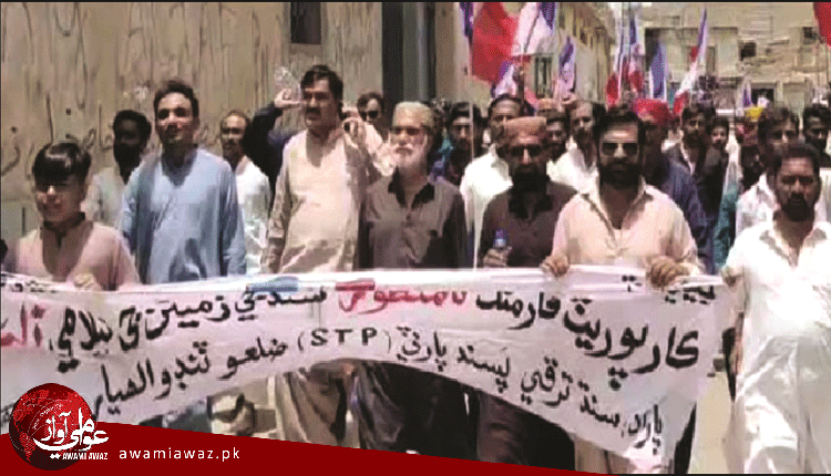 ڪارپوريٽ فارمنگ خلاف ٽنڊوالهيار ۾ حيدر شاهاڻي جي اڳواڻي ۾ ايس ٽي پي جي ريلي