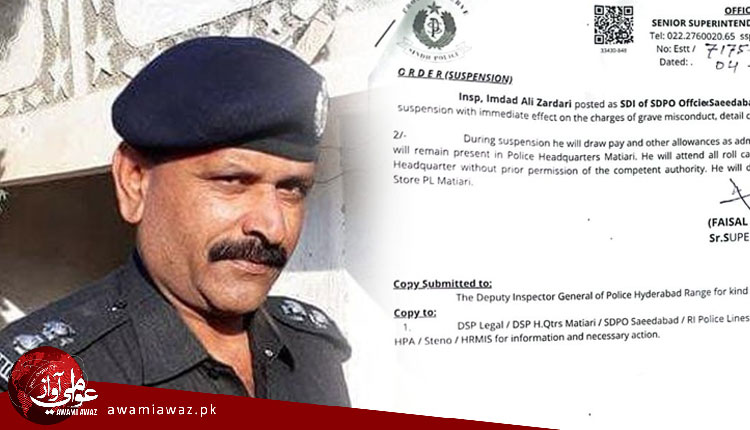 نيوسعيدآباد ( رپورٽ: مشتاق راھو) گهرو وزير خلاف ٿو ڳالهائين، ايس ايس پي مٽياري نيوسعيدآباد ٿاڻي جي ايڊيشنل ايس ايڇ او امداد علي زرداري کي معطل ڪرڻ جو ليٽر جاري ڪري ڇڏيو، ايس ايس پي مٽياري نيوسعيدآباد ٿاڻي جي ايڊيشنل ايس ايڇ او انسپيڪٽر امداد علي زرداري کي سنگين بدانتظامي جي الزامن تي فوري طور تي معطل ڪندي کيس پوليس لائين مٽياري ۾ رپورٽ ڪرڻ جو ليٽر جاري ڪري ڇڏيو آهي، معطلي واري ليٽر ۾ ڄاڻايو ويو آهي ته تفصيلي الزام بعد ۾ لڳايا ويندا ۽ معطلي دوران، هو ضابطن جي تحت قابل قبول پگهار ۽ ٻيا الائونس حاصل ڪندو رهندو جڏھن ته پوليس هيڊ ڪوارٽر مٽياري ۾ موجود رهندو ۽ باقاعدگي سان سڀني رول ڪالز ۾ شرڪت ڪندو ان کان علاوه مجاز اختيارين جي اڳواٽ اجازت کانسواءِ هيڊ ڪوارٽر نه ڇڏيندو. هو پنهنجو بيلٽ ڪپڙن جي دڪان پي ايل مٽياري ۾ جمع ڪرائيندو.واضح رهي ته ٻه اڳ معطل ٿيل انسپيڪٽر امدادعلي زرداري گهرو وزير تي ڪرپشن ڪرڻ، منٿلي وٺڻ جا الزام هنيا هئا، آصف علي زرداري ۽ فريال ٽالپر کي مخاطب ٿيندي چيو هو ته پيپلزپارٽي ختم ٿي وئي آهي، زردارين جا ڪم نه ٿي رهيا آهن ۽ گهرو وزير ڪرپشن ڪري رهيو آهي اهڙو وڊيو بيان امداد زرداري جو سوشل ميڊيا تي وائرل ٿيو هو جنهن بعد کيس ايس ايس پي مٽياري معطل ڪري ڇڏيو آهي