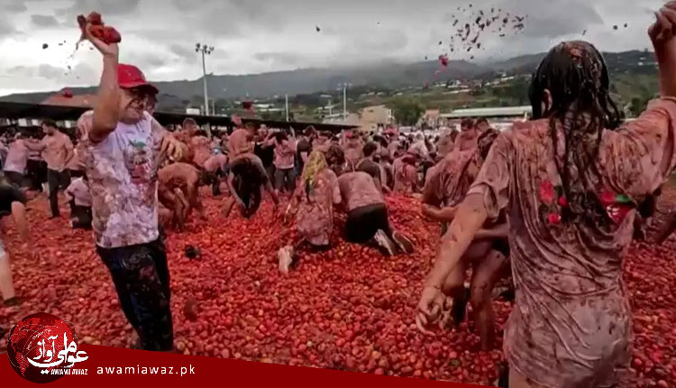بوگوٽا (ويب ڊيسڪ) ڏکڻ آمريڪي ملڪ ڪولمبيا ۾ مشهور ٽماٽن جو ميلو ”گران ٽوميٽينا فيسٽيول“ ٻيهر موٽي آيو، جنهن ۾ هزارين ماڻهن شرڪت ڪئي.