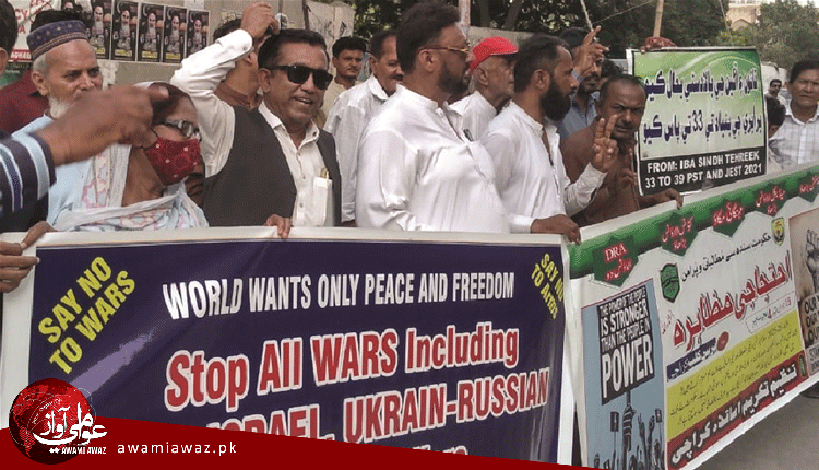 ”جنگي جنونيت نامنظور“ڪراچي ۾ ورڪرز سوليڊرٽي فيڊريشن جو احتجاج