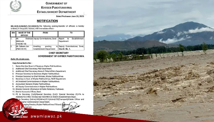 صوبائي سرڪار طرفان جاري ڪيل نوٽيفڪيشن موجب، ڊي سي سوات سان گڏ 18هين گريڊ جي هڪ ٻئي آفيسر کي به واقعي کانپوءِ معطل ڪيو ويو آهي.