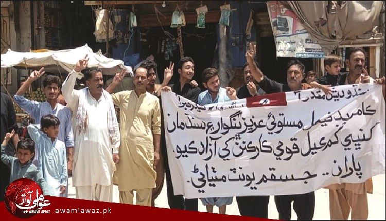 ڪراچي/حيدرآباد/سکر(رپورٽر/نمائندا) جيئي سنڌ قومي محاذ جي سڏ تي ڪارڪن کنڀي گم ڪرڻ خلاف احتجاج ڪيو ويو آهي. جسقم ضلعي نوشھرو فيروز جي اڳواڻن فيصل مستوئي ۽ عزيز ڀنگوار کي کنڀي گم ڪرڻ خلاف جسقم مرڪزي سڏ تي مٺياڻي ۾ شھباز مستوئي ، ظفر کوکر ، نظير احمد مستوئي ، جميل احمد سولنگي ۽ ٻين جي اڳواڻي ۾ بک ھڙتال ۽ احتجاجي مظاهرو ڪيو ويو. ڪوٽڙي ۾ ديدار شام، علي بخش ڪابورو، جبران سومرو، ببلو برفت جي اڳواڻي ۾ احتجاج ڪيو. سڪرنڊ ۾ بشير شر، رستم شر، فيصل مستوئي، عزيز ڀنگوار سميت ٻين ڪارڪنن کي کنڀي گم ڪرڻ خلاف قاضي سرفراز ميمڻ چوڪ تي سخت احتجاج ڪيو ويو. ان موقعي تي مصطفٰى زئور، مورڙو مير بحر، برڪت جلباڻي چيو ته سنڌ جي وسيلن، زمينن تي قبضن ۽ سنڌو درياھ مان غيرقانوني ڪئنال ڪڍڻ خلاف قومي ڪارڪن احتجاج ڪن ٿا ته انهن کي گرفتار ڪري گم ڪيو وڃي ٿو. لاڙڪاڻي ۾ جسقم قائد عوام پريس ڪلب اڳيان احتجاجي مظاهرو ڪيو. ان موقعي تي جسقم جي مرڪزي اڳواڻ اطهر سومرو، جسقم ضلعي صدر عزيز الرحمان شيخ، جساف جي مرڪزي اڳواڻ اشرف ڪلهوڙو، جسقم اڳواڻ صفدر جتوئي، فراز کهاوڙ، آفتاب ميراڻي، راحب سومرو، بشير جتوئي، تعلقي صدر ارشاد ملگاڻي، امتياز موريو، طارق جتوئي ۽ ٻين خطاب ڪيو. اڳواڻن چيو ته جيڪڏهن قومي ڪارڪنن مٿان الزام آهن ته کين قانون موجب عدالتن ۾ پيش ڪري ڪيس هلايا وڃن.