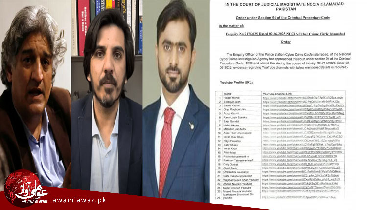 ميڊيا رپورٽن موجب، عدالت ايف آءِ اي جي هڪ جاچ آفيسر جي درخواست تي يوٽيوب ڪمپني کي حڪم ڏنو آهي ته مطيع الله جان، اسد طور، حيدر مهدي، اوريا مقبول، آرزو ڪاظمي، صديق جان، عمران رياض خان، آفتاب اقبال، احمد نوراني سميت 27 چينلن کي بند ڪيو وڃي.